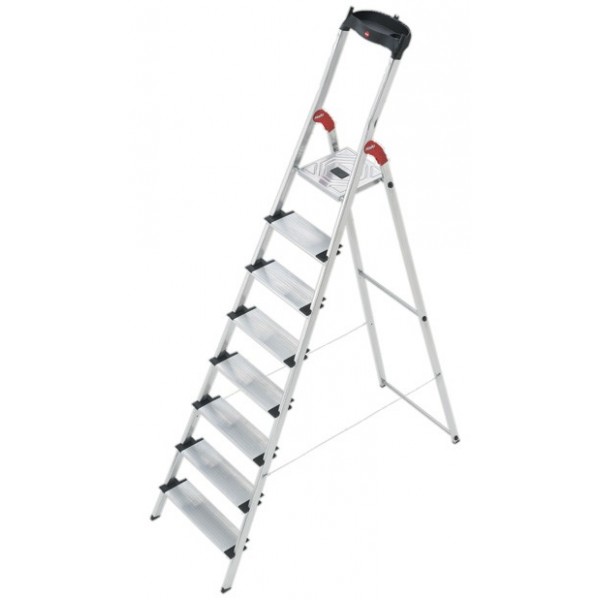 Σκάλα με εφτά φαρδιά σκαλoπάτια 13cm και ένα πλατύσκαλο, με ύψος 1,72m κατασκευασμένη από πολύ ανθεκτικό αλουμίνιο για οικιακή και επαγγελματική χρήση.