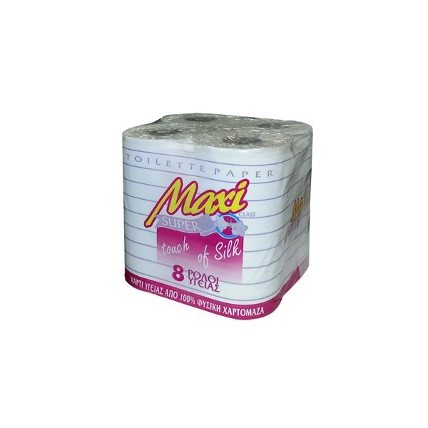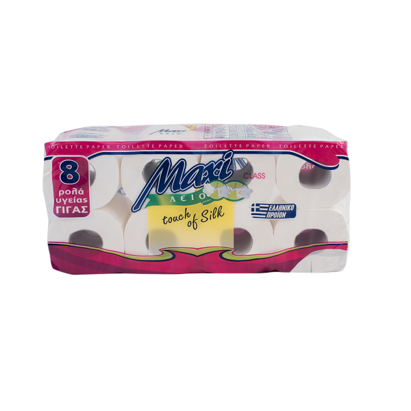 Χαρτί ρολλό w.c, δίφυλλο λείο από καθαρή χαρτόμαζα. Κατάλληλο για όλες τις οικιακές συσκευές. Πακέτο 8 ρολά.